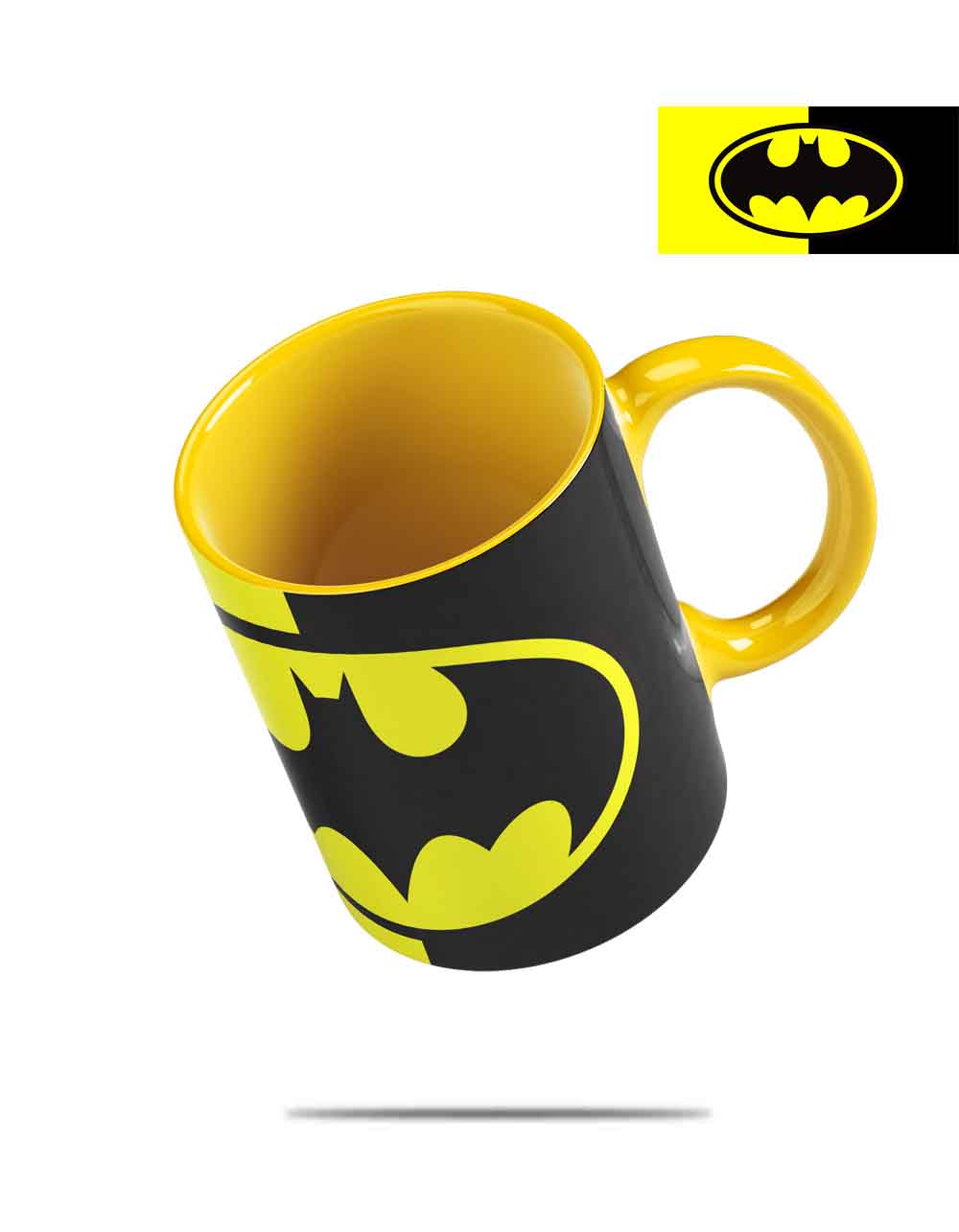 Hermosa taza con el diseño de Batman Logo con interior de color Amarillo