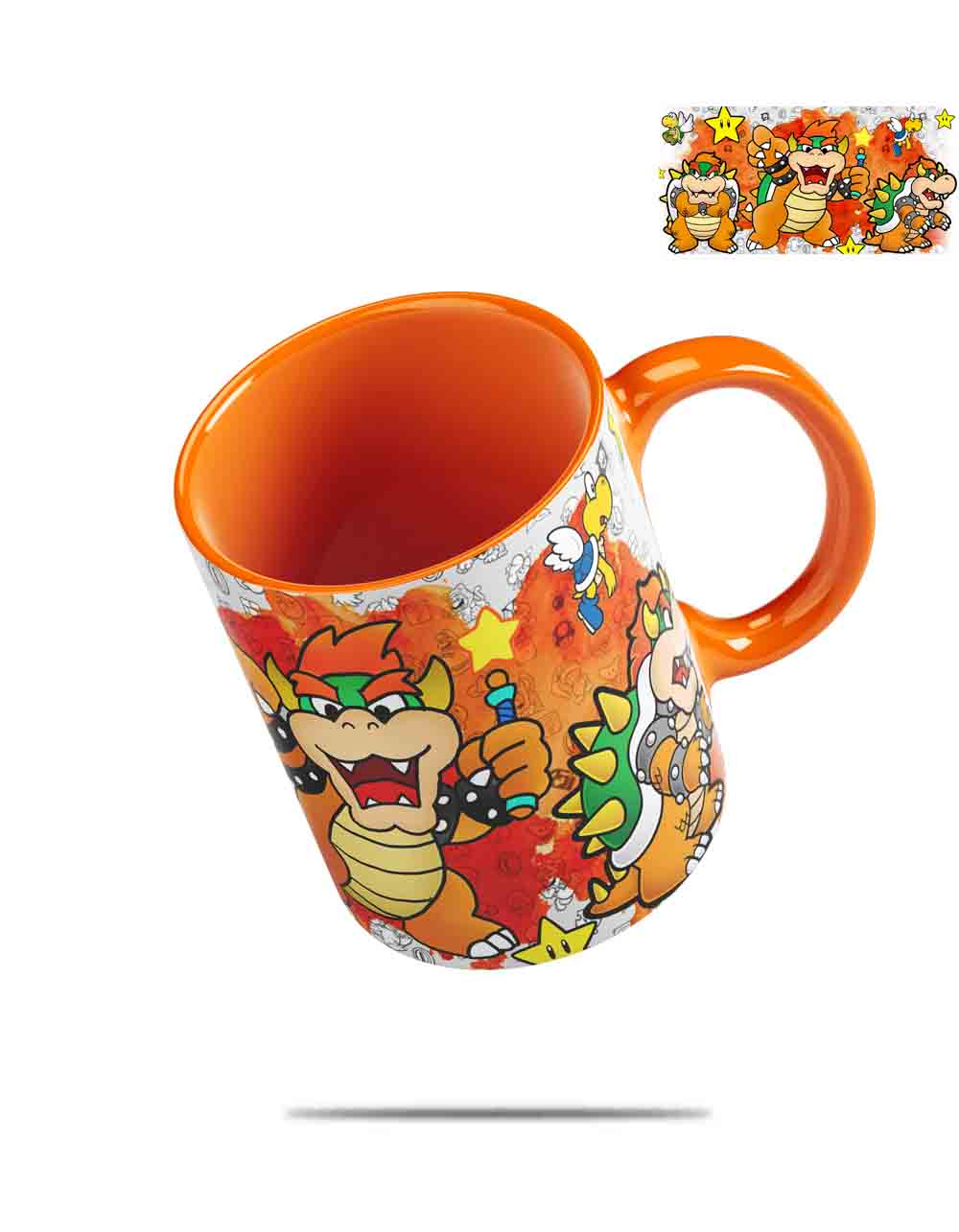 Hermosa taza con el diseño de Bowser con interior de color Anaranjado