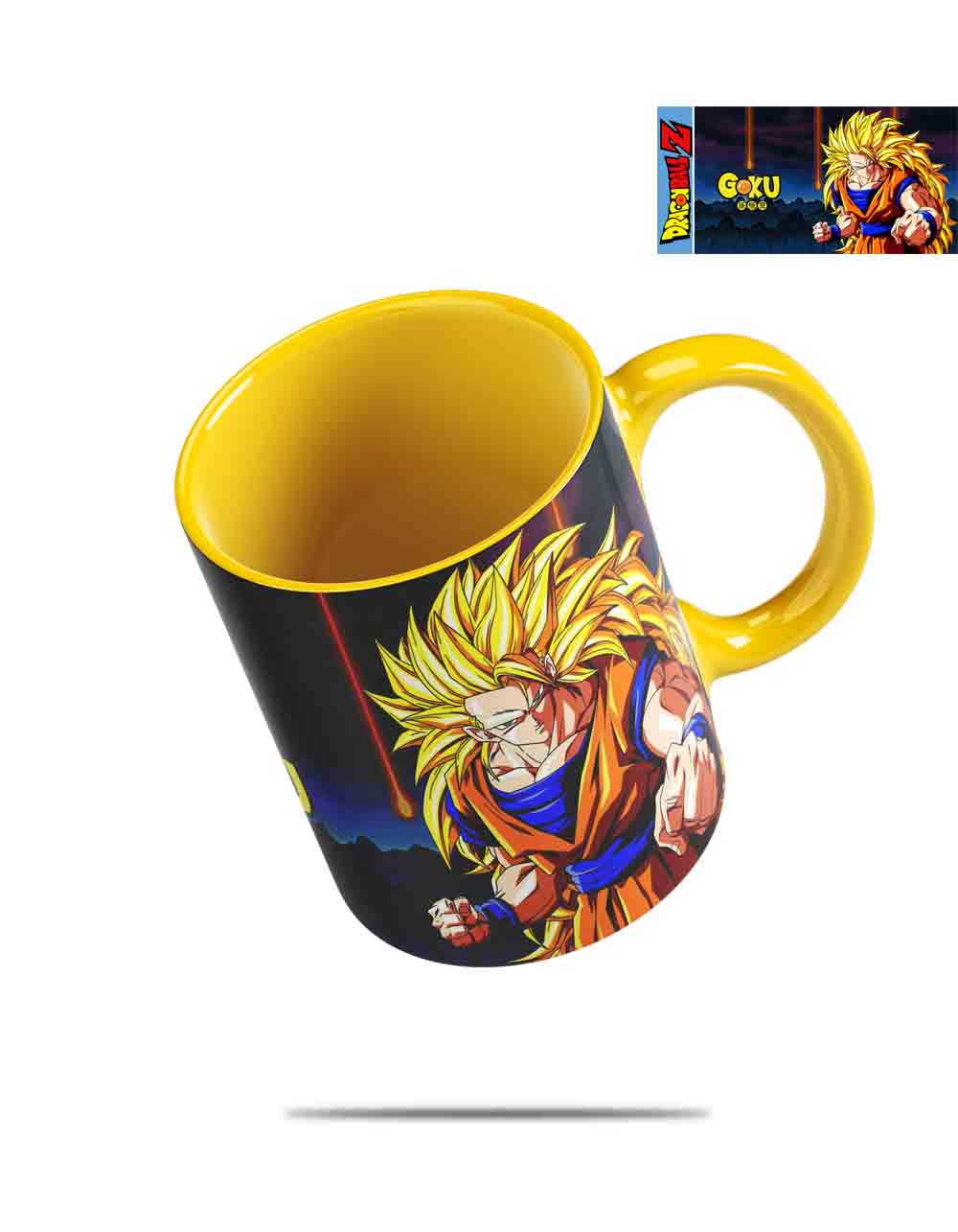 Hermosa taza con el diseño de Goku con interior de color Amarillo