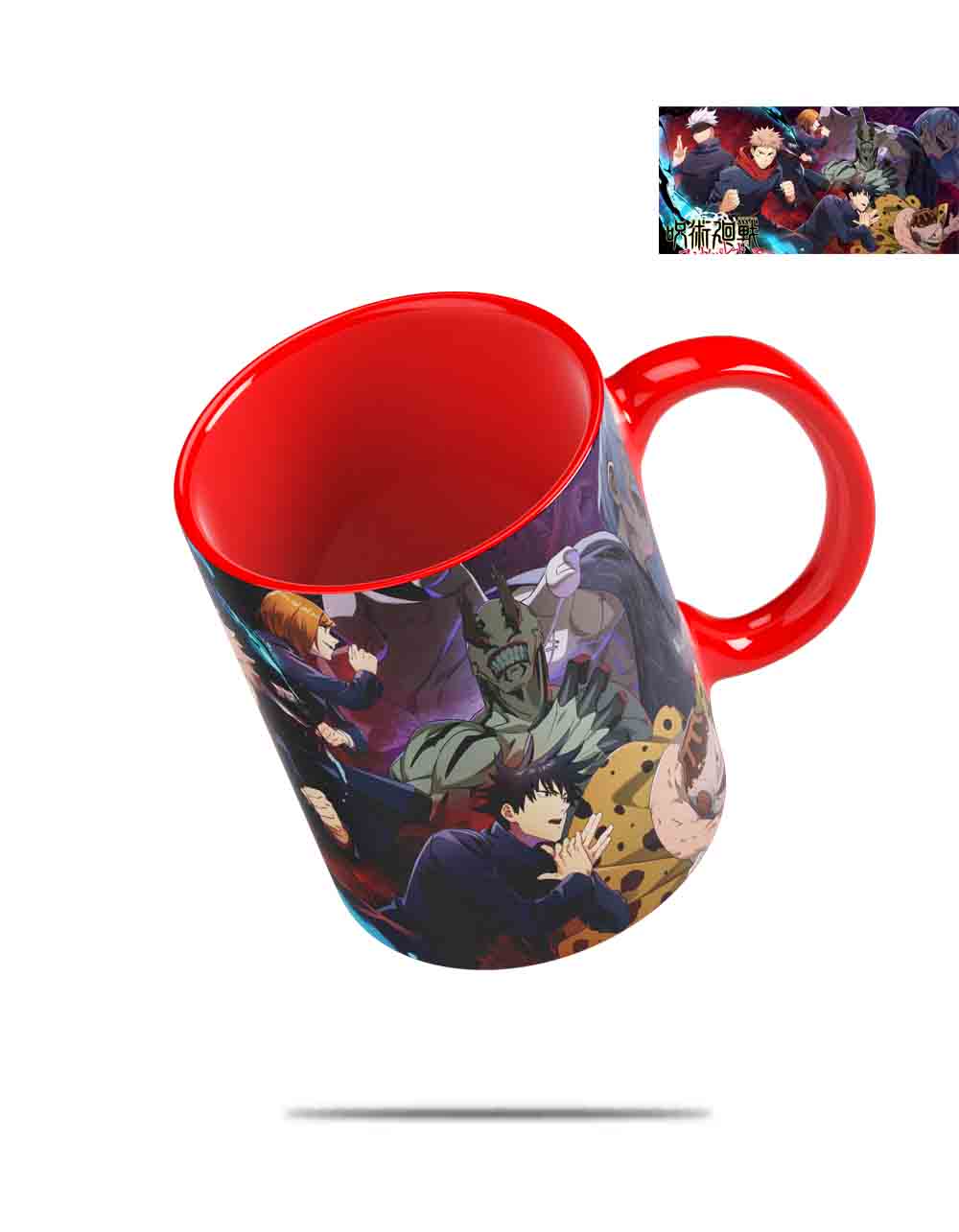 Hermosa taza con el diseño de Jujutsu Kaisen con interior de color Rojo